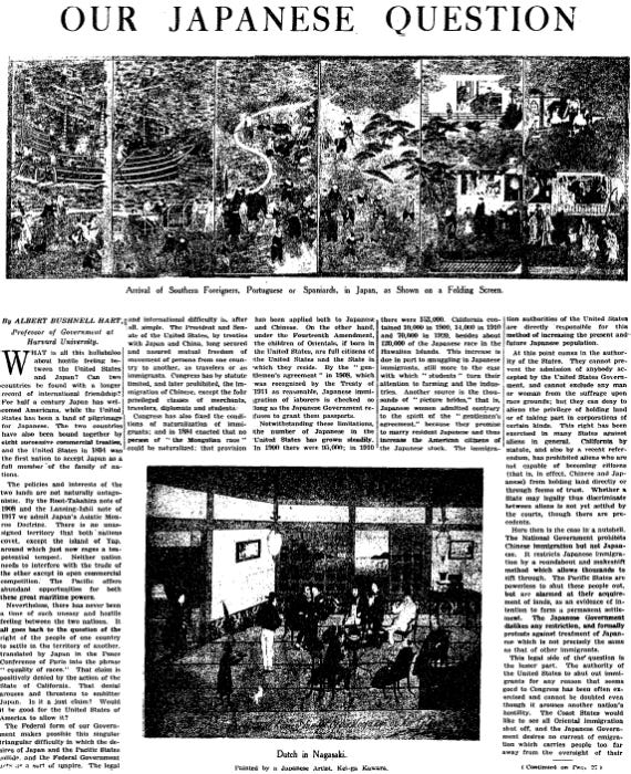 In 1921, a Harvard government professor warned that "There has never been a time of such uneasy and hostile feeling between the two nations" of the U.S. and Japan. 20 years later came Pearl Harbor.