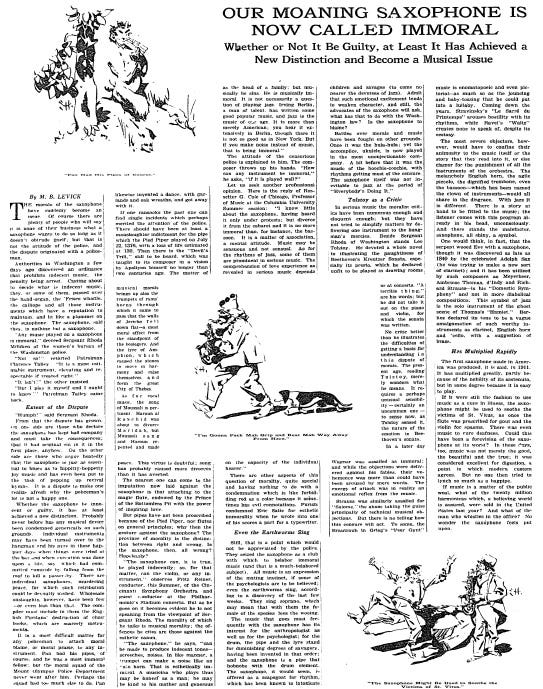 Was the saxophone as an instrument a vessel for immorality? The Vatican declared it so in 1903. As the jazz age took off in the 1920s, a September 1925 New York Times Magazine article debated the issue.