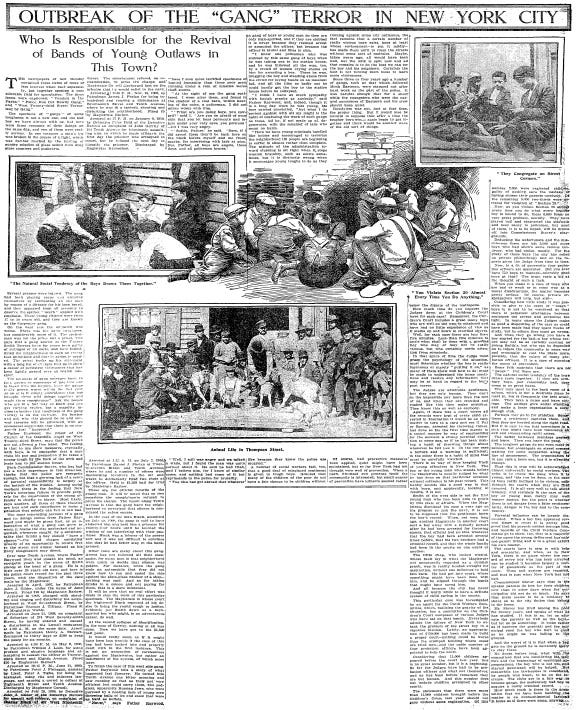 OUTBREAK OF THE "GANG" TERROR IN NEW YORK CITY: Who Is Responsible for the Revival of Bands of Young Outlaws in This Town? (PDF)