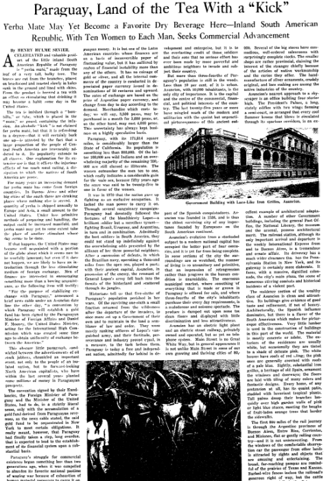 This 1920 article predicted Paraguay's beverage yerba mate "may become a habit some day in the United States." It was not to be.