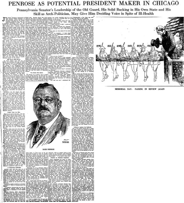 A week before the 1920 Republican convention, an article suggested Pennsylvania Sen. Boies Penrose could decide the party's presidential nominee. As it turns out, he kind of did.
