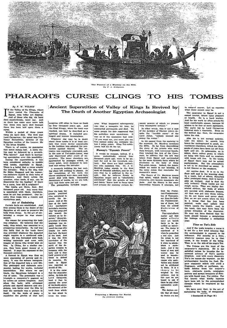 Three years after King Tut’s tomb was opened in Egypt, six people associated with the opening had died, spreading the now-common notion of a “curse.” Though it’s widely known now, a 1926 New York Times Magazine article marked one of the curse’s earliest references.