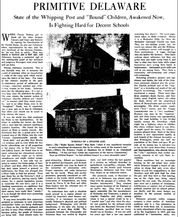 For anyone who claims the New York Times is biased, or looks down upon certain areas of the country, it's impossible to imagine them calling a state "primitive" as they did to Delaware in 1919.