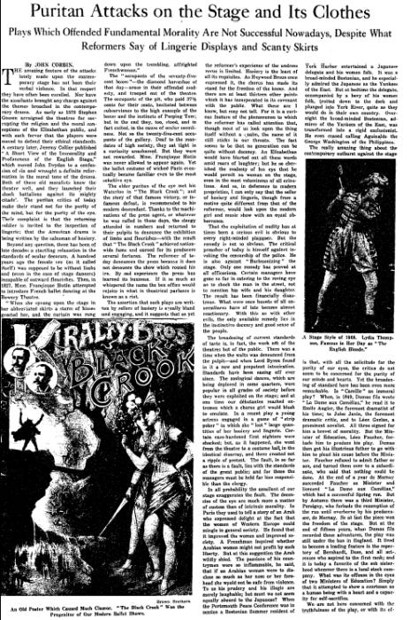 Puritan Attacks on the Stage and Its Clothes: Plays Which Offended Fundamental Morality Are Not Successful Nowadays, Despite What Reformers Say of Lingerie Displays and Scanty Skirts