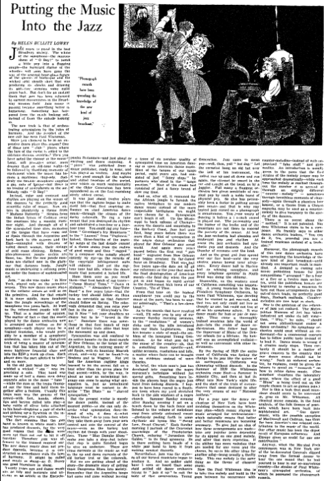 Racial subtext was at play here, with "unrefined" and "refined" often serving as euphemisms for what was really going on: jazz originated in the black community and was altered to become more amenable to white sensibilities. As this 1922 New York Times Magazine article explained: