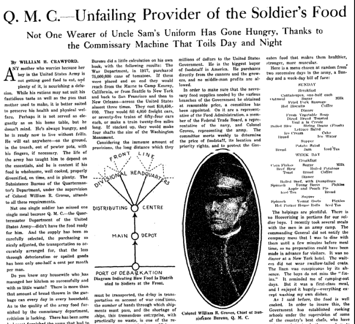 How were soldiers fed during WWI? By the Q.M.C., which stood for "Quartermaster [Corporal] Department of the United States Army."