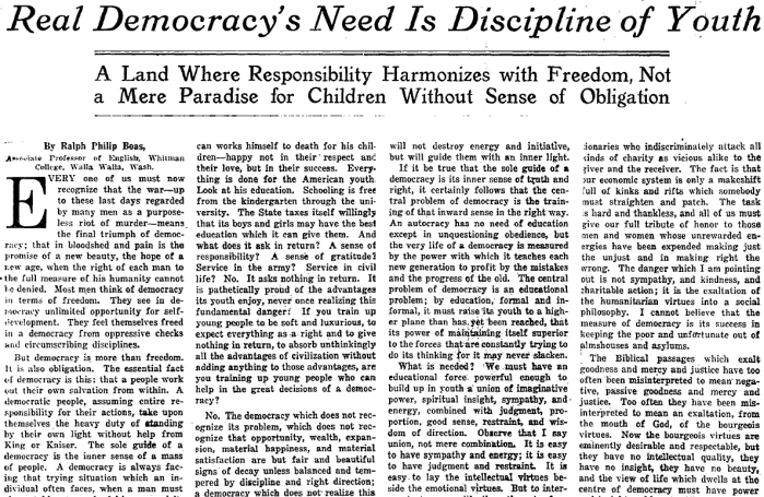 Real Democracy's Need Is Discipline of Youth: A Land Where Responsibility Harmonizes with Freedom, Not a Mere Paradise for Children Without Sense of Obligation