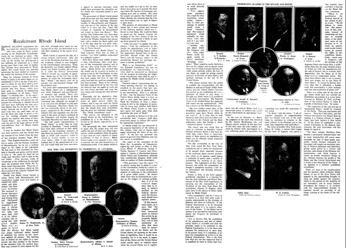 Only three states didn't ratify the 18th Amendment establishing Prohibition, before it went into effect: Connecticut, New Jersey, and Rhode Island. As Prohibition was about to take effect, Rhode Island considered disobeying it.