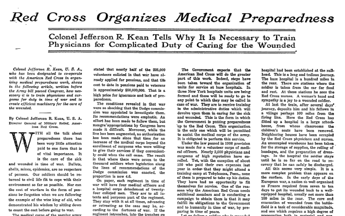 Red Cross Organizes Medical Preparedness: Colonel Jefferson R. Kean Tells Why It Is Necessary to Train Physicians for Complicated Duty of Caring for the Wounded