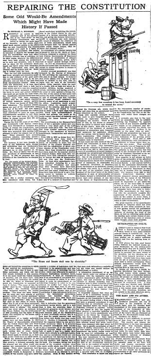 A 1923 New York Times Magazine article highlighted the most unusual constitutional amendment proposals from the prior decade or so, including: