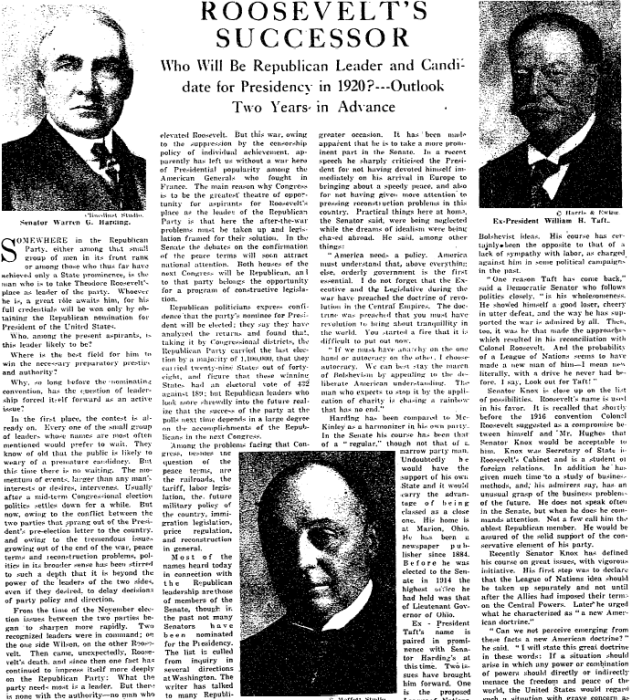 So who would be the 1920 Republican nominee? The anonymous author predicted either former President William Howard Taft or Ohio Senator Warren Harding.