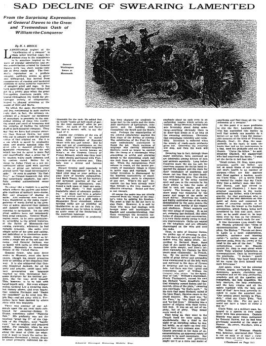 Swearing was becoming less frequent, according to a September 1924 New York Times Magazine article by H.I. Brock. He pinned the likely culprits on new technologies like the telephone and radio, mechanization, and... the end of slavery six decades prior?