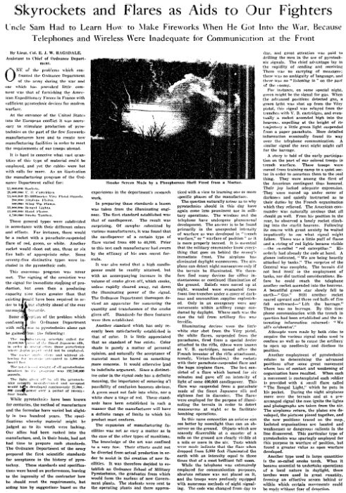 Skyrockets and Flares as Aids to Our Fighters: Uncle Sam Had to Learn How to Make Fireworks When He Got Into the War, Because Telephones and Wireless Were Inadequate for Communication at the Front