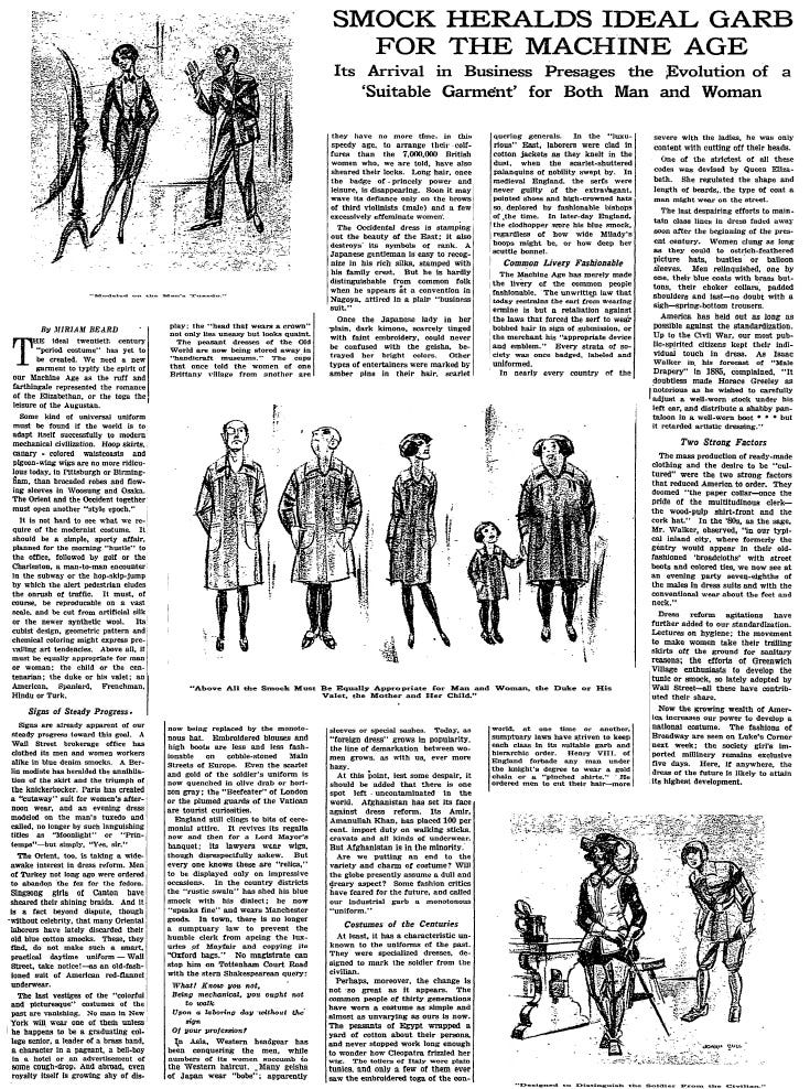 Smock Heralds Ideal Garb for the Machine Age: Its Arrival in Business Presages the Evolution of a ‘Suitable Garment’ for Both Man and Woman