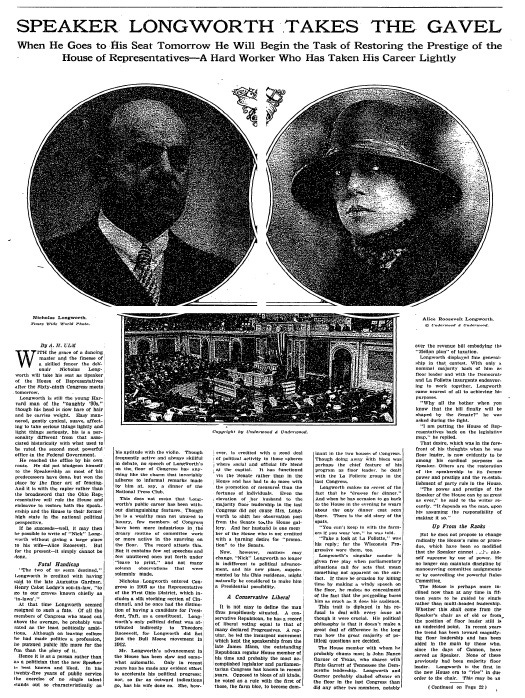 Speaker Longworth Takes the Gavel: When He Goes to His Seat Tomorrow He Will Begin the Task of Restoring the Prestige of the House of Representatives – A Hard Worker Who Has Taken His Career Lightly
