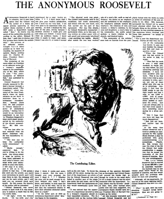 As an ex-president, Theodore Roosevelt wrote an anonymous monthly column for one of America's biggest magazines, Ladies' Home Journal, under the recurring column title "Men."