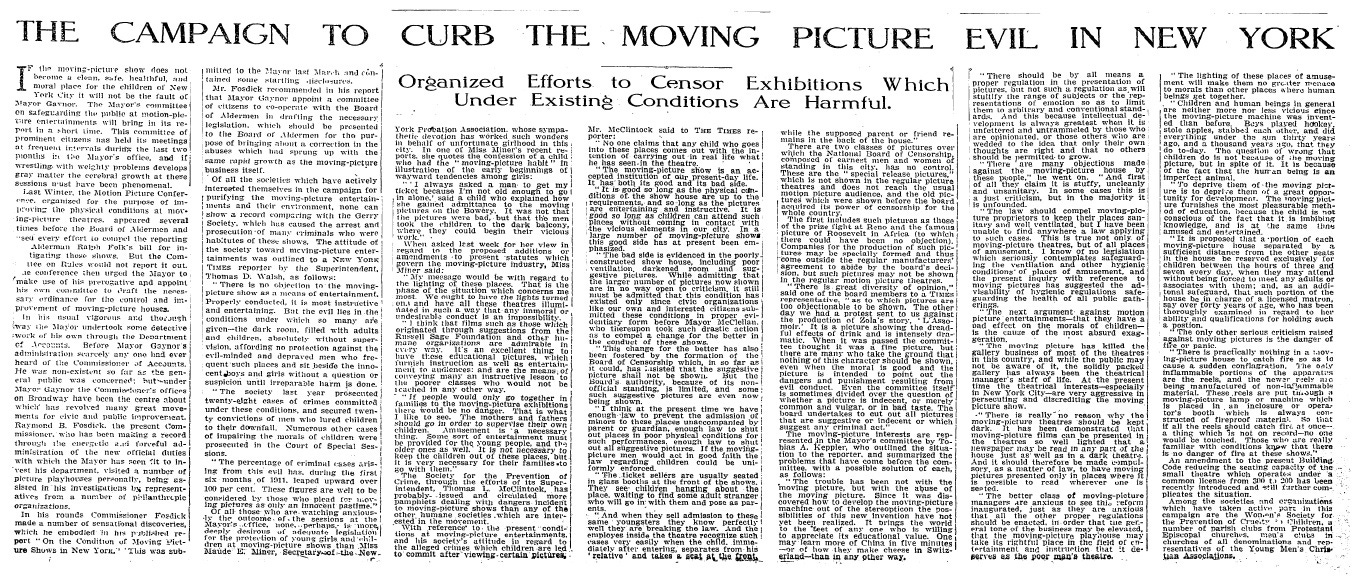 THE CAMPAIGN TO CURB THE MOVING PICTURE EVIL IN NEW YORK: Organized Efforts to Censor Exhibitions Which Under Existing Conditions Are Harmful. (PDF)