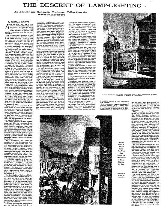 In 1924, New York Times Magazine profiled the precipitous decline of a once-common NYC profession: the lamp-lighter.