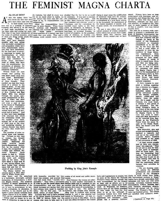 In 1920, a constitutional amendment gave women the right to vote. In 1921, Wisconsin became the first state to enact an equal rights law for women in all respects, not just voting. In 1922, advocates wanted that nationally.
