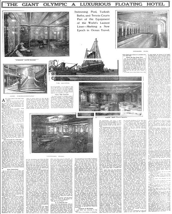 THE GIANT OLYMPIC A LUXURIOUS FLOATING HOTEL: Swimming Pool, Turkish Baths, and Tennis Courts Part of the Equipment of the Wolrd's Largest Liner -- Marking a New Epoch in Ocean Travel. (PDF)