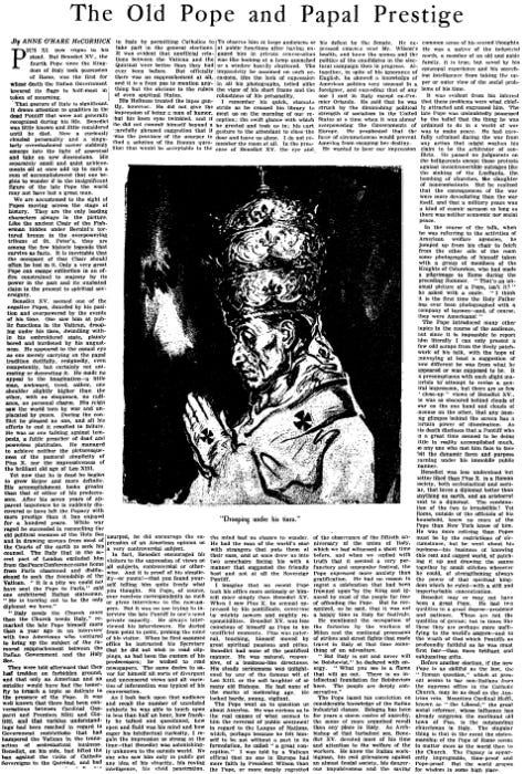 This New York Times Magazine article wrote in February 1922 of the new pope, comparing and contrasting him with his just-deceased predecessor: