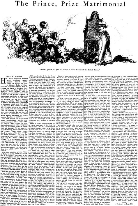 A 1922 New York Times Magazine article asked whether the 28-year-old Prince of Wales, who would later become King Edward VIII, would ever marry.