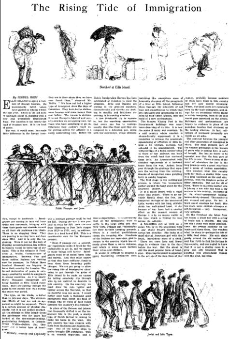 "As it is, nearly thirty thousand immigrants are being handled at Ellis Island every week. More are coming through the gates in one month now than during the entire war period... And it is only the beginning. Were it not for the lack of shipping accommodations, ten million foreigners would be battering at our doors."