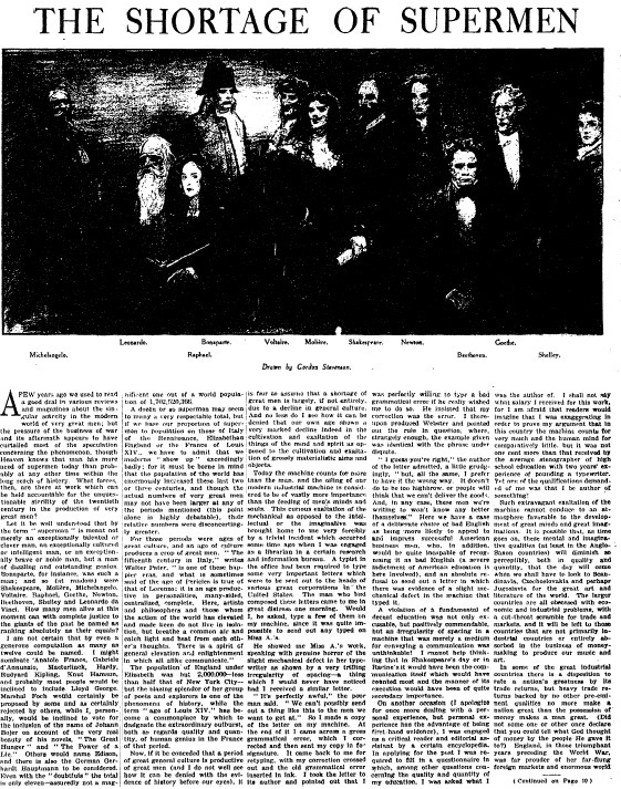 A 1922 New York Times Magazine article posited that, compared to prior eras, there was now an "unquestionable sterility of the twentieth century in the production of very great men."