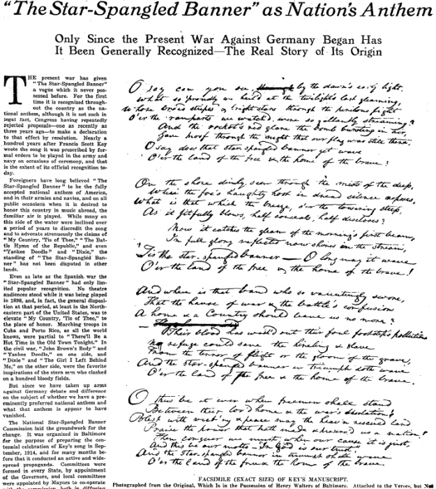 'The Star-Spangled Banner' as Nation's Anthem: Only Since the Present War Against Germany Began Has It Been Generally Recognized -- The Real Story of Its Origin