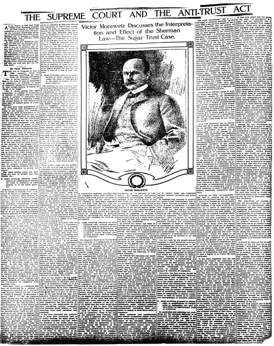 THE SUPREME COURT AND THE ANTI-TRUST ACT: Victor Morawetz Discusses the Interpretation and Effect of the Sherman Law -- The Sugar Trust Case. (PDF)