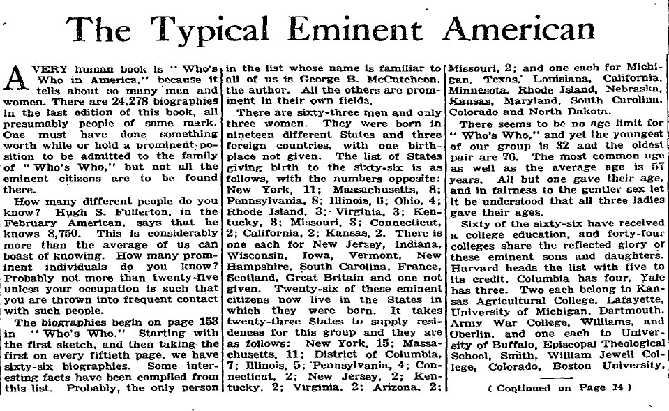 Which types of people were included in the 1923 edition of Who's Who in America? The New York Times Magazine crunched the numbers.