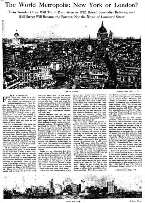 In 1919, London's long-held title as "the world metropolis" was threatened by the sharp rise of New York City. Which would win out?