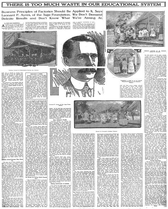 THERE IS TOO MUCH WASTE IN OUR EDUCATIONAL SYSTEM: Business Principles of Factories Should Be Applied to It, Says Leonard P. Ayres, of the Sage Foundation. We Don't Demand Definite Results and Don't Know What We're Aiming At. (PDF)