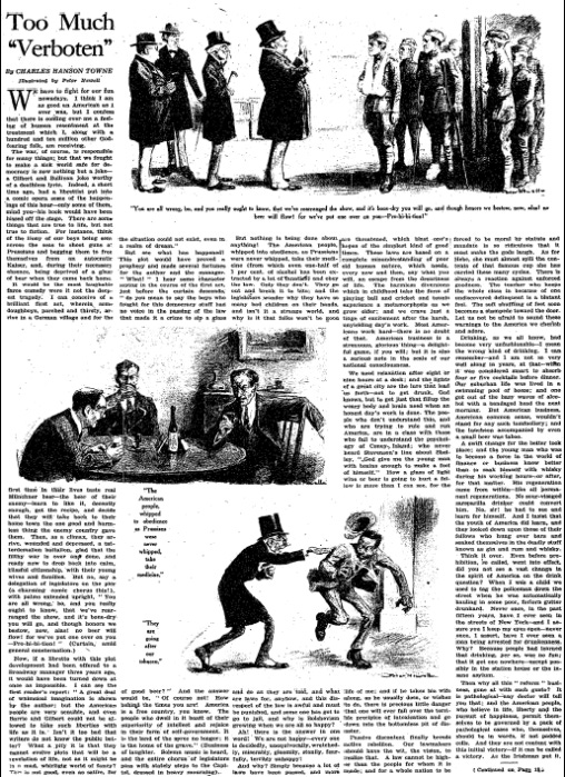Charles Hanson Towne wrote for the New York Times Magazine, describing his hypothetical monologue on the stand if he was arrested for drinking: