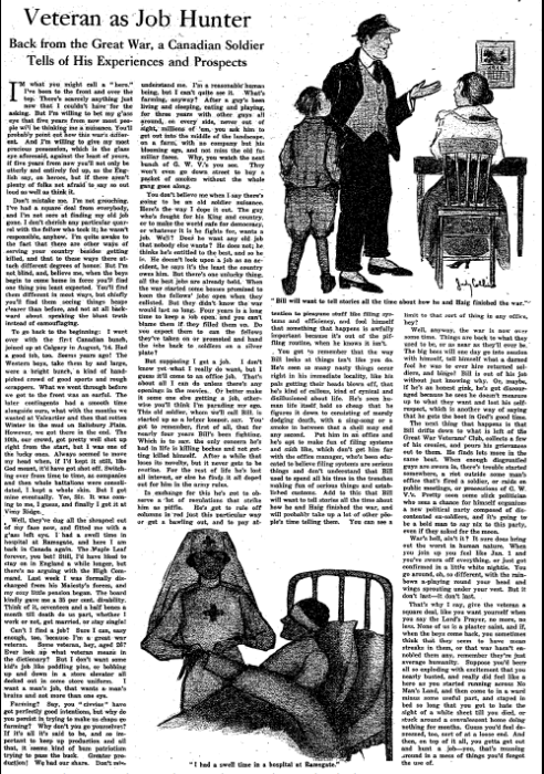 An anonymous Canadian soldier penned this reflection about the difficult transition from life in the trenches of World War I back to the civilian working world.