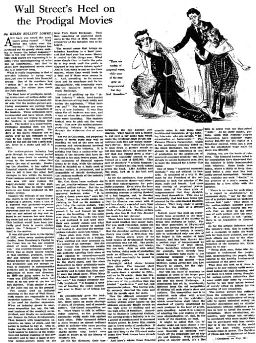 The final hour of profligate spending draws near -- of million-dollar salaries and two-hundred-thousand-dollar sets. For the motion-picture-producing companies are putting their houses in order for the inspection of the bankers. These companies have incorporated and have issued stock, and now they are trying to interest the bankers in underwriting that stock. The banker is a conservative. Profligate spending does not look good to him on the payroll.
