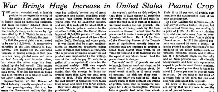 The final sentence's prediction that "Down in the cotton country they are saying that we are soon to see the rise of peanut barons" never quite came true, as best I can tell from quick research.