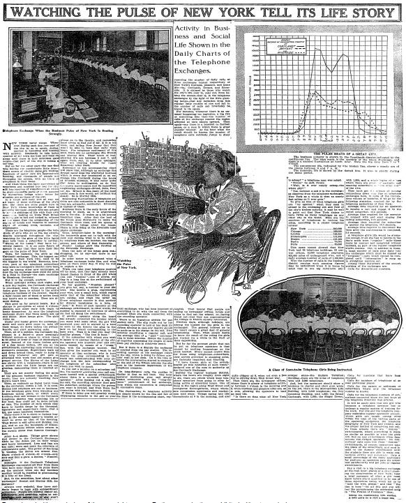 WATCHING THE PULSE OF NEW YORK TELL ITS LIFE STORY: Activity in Business and Social Life Shown in the Daily Charts of the Telephone Exchanges. (PDF)