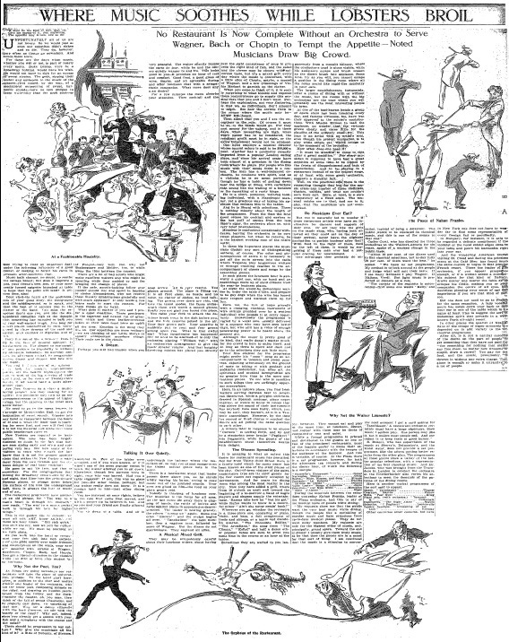 WHERE MUSIC SOOTHES WHILE LOBSTERS BROIL: No Restaurant Is Now Complete Without an Orchestra to Serve Wagner, Bach or Chopin to Tempt the Appetite -- Noted Musicians Draw Big Crowd (PDF)