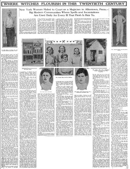 WHERE WITCHES FLOURISH IN THIS TWENTIETH CENTURY: New York Woman Haled to Court as a Magician in Allentown, Penn. -- Big Modern Communities Where Spells and Incantations Are Used Daily for Every Ill That Flesh Is Heir To. (PDF)