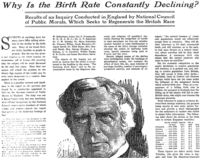 What's fascinating is that most of the reasons why the birth rate is deemed to be falling in 2016 are not major reasons for the same phenomenon in certain countries back in 1916. Increased education for women? Barely. Later ages for marriages and starting families? Not really. Abortion? That wasn't legal in the U.K. until 1967, and for the most part wasn't legal in the U.S. either until 1973.