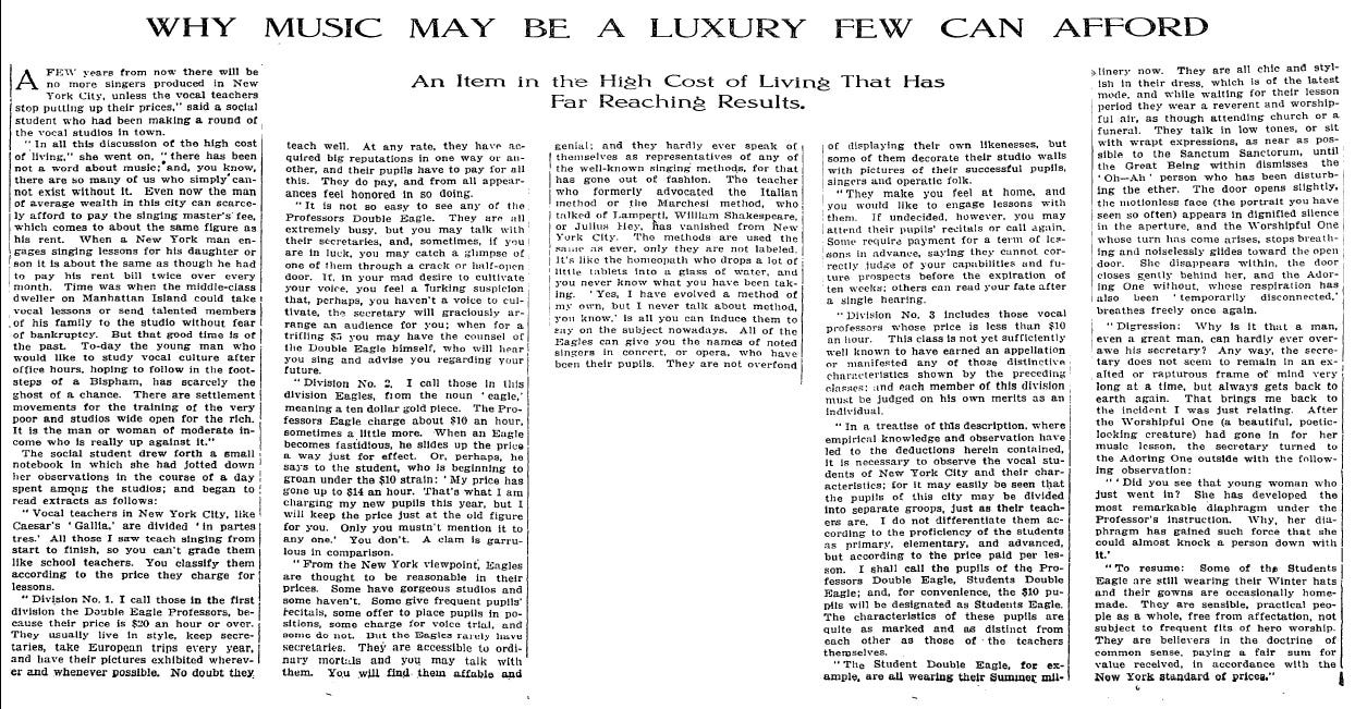 I wonder how the average cost of voice lessons in 1911 compares to the average cost today, when I suspect the demand is much lower, and it's more of a niche occupation.