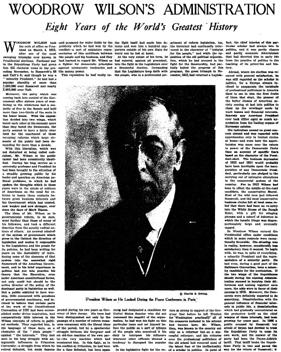 Woodrow Wilson's Administration: Eight Years of the World's Greatest History