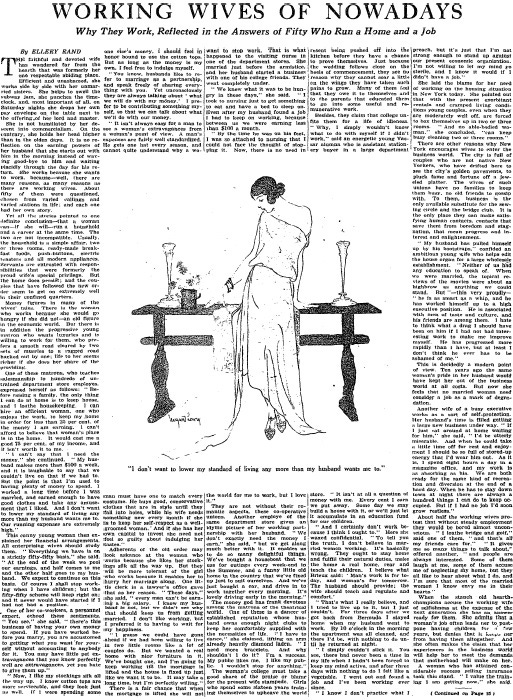 In 1923, as more married women started to work outside the home, the New York Times Magazine interviewed 50 of them for a feature titled "Working Wives of Nowadays."