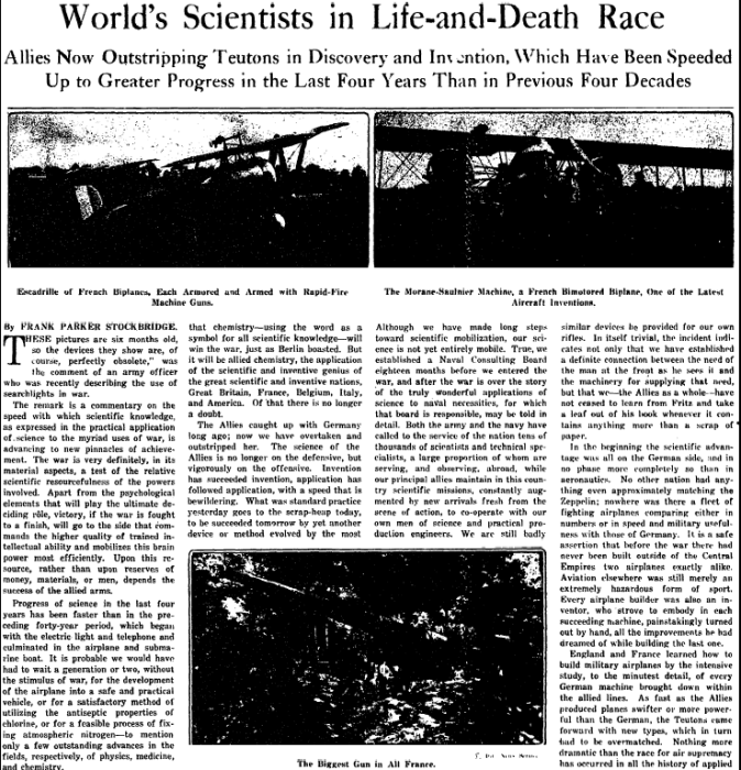 World War I sparked a massive technological boom, a silver lining to an otherwise horrific blemish on humanity's history. That would come to be true of World War II a few decades later as well. As this 1918 article describes: